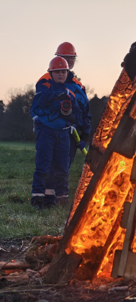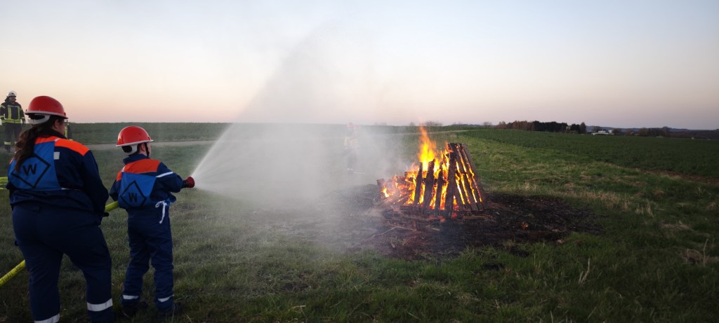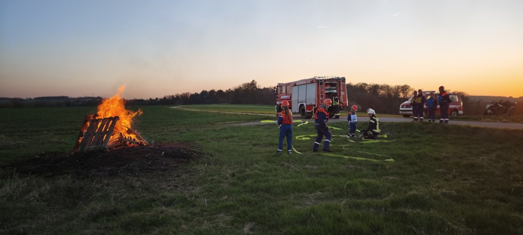 Heute war es mal wieder soweit. Die Jugendfeuerwehr konnte die erlernte Theorie der letzen Monate anwenden und umsetzen und das entzündete Feuer mit vereinten Kräften löschen.